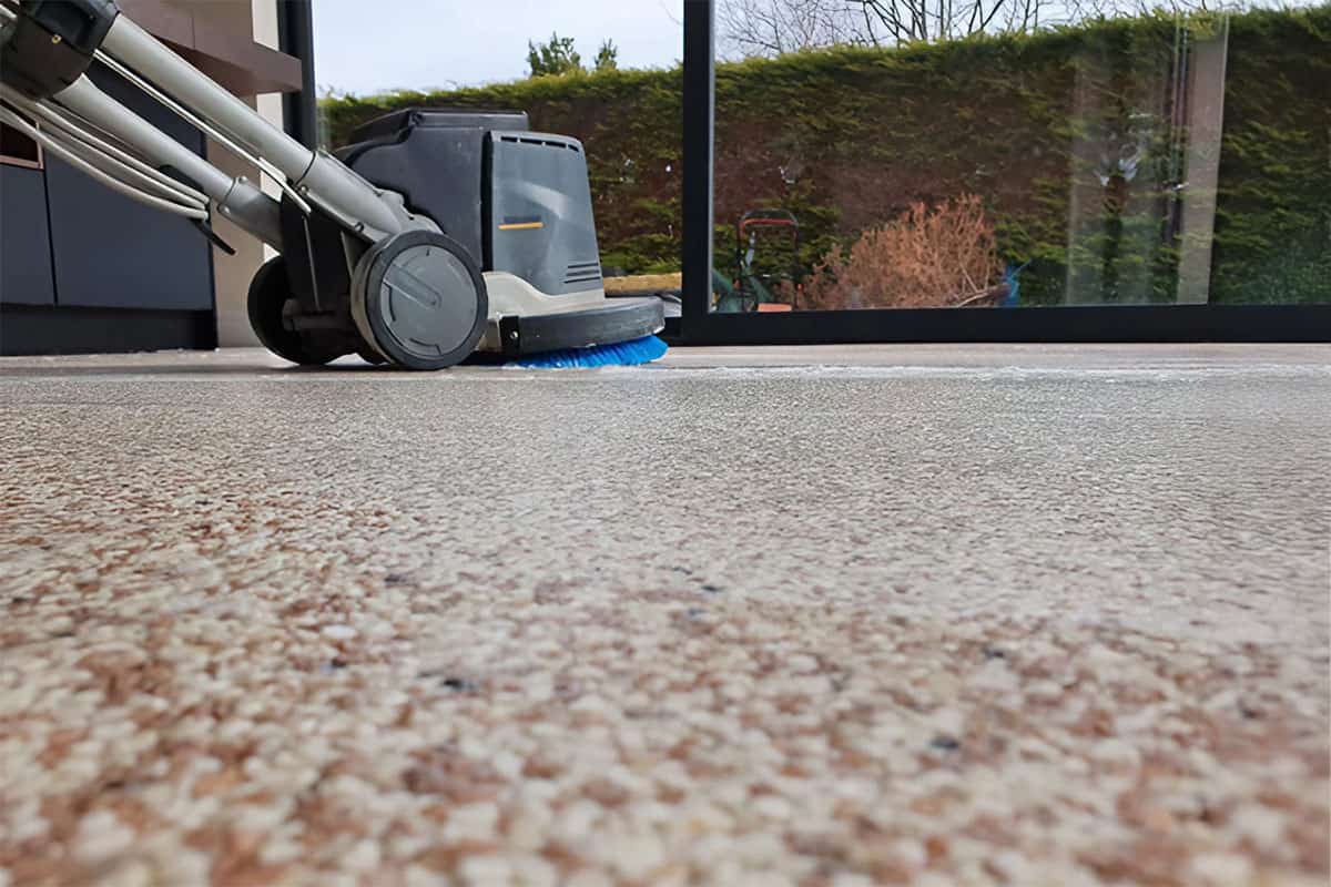 - Rinçage : Après le temps d’action recommandé, rincez abondamment la surface avec un nettoyeur à basse pression, en maintenant la lance à environ 80 cm du sol pour éviter d’endommager la moquette.